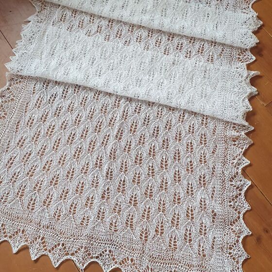 Käsitsi kootud Haapsalu sall. Kasutatud 100% villa. Mõõdud 154x65cm.