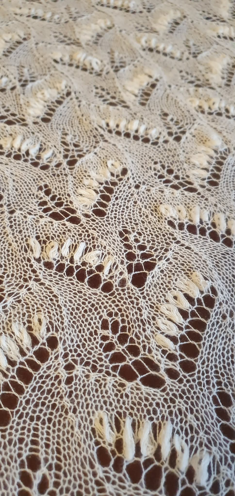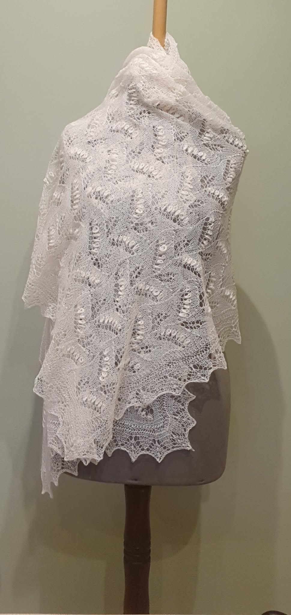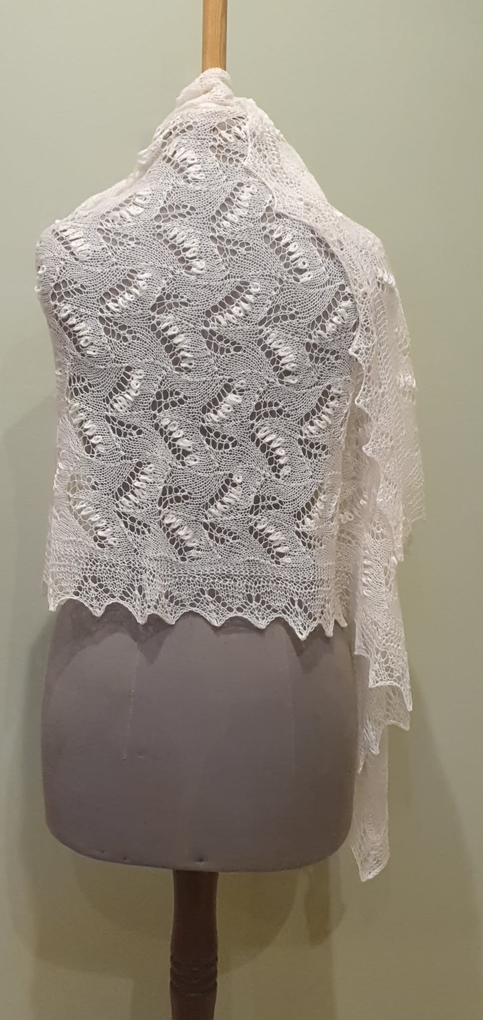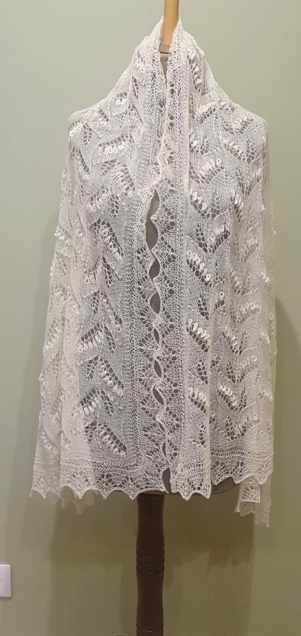 Käsitsi kootud Haapsalu sall. Kasutatud 100% villa. Mõõdud 164x72cm.